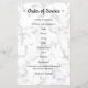 Modern White Marble Unique Memorial Funeral Program/Firande of Life Programme. Dessa sympatibegravningsprogram har en unik fotokollage för fem av dina favoritfoton, inledande mongram och namn, en hjärtfull citattecken "In Loving Memory...".De vi kärlek går inte bort, de går bredvid oss varje dag, osedda, men alltid nära. Fortfarande älskade fortfarande missade och mycket kära. " ...för alltid i våra hjärtan" på en modern, vit marmordesign. Anpassa det här firande i livets begravningsprogram med dina kära foton, namn & data, serviceordning och tack för att du erkände det. ...COPYRIGHT © 2020 Judy Burrows, Black Hund Art - Med alla Höger reserverade. Budget Modern Marble Memorial - begravningsprogram