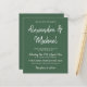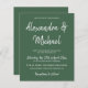 Elegant trendig typografi budget för en prisvärd bröllopsinbjudan i enkel grönt för munkjägare och vita bokstäver med stora briders och grooms kalligrafi av namn. +++++++++++++++++++++ Du kan ändra färg på text och bakgrund efter att du har valt alternativet CUSTOMIZE ytterligare. ++++++++++ Inbjudan är lämplig för alla årstider - vår, sommar, höst, vinter - inredning av bröllop inomhus.
