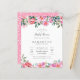 Modern inbjudningskort för möhippan med rosa vattenfärgsblommor och elegant, modern typografi. Som en del av budgetvalet här på Zazzle, är dessa inbjudningar inte komar med kuvert och passar inte heller in i ett kuvert av standardstorlek. Den närmaste storleka är A6, men det kommer att finnas en lucka på ungefär en halv tum. Om du inte har något emot att det saknas snus kan du använda så allmänt tillgängliga A6-kuvert. I annat fall kan denna design överföras till ett standardformat 5 x 7 (som levereras med kuvert) med hjälp av designöverföringen verktyg. Som en ungefärlig guide skulle 100 inbjudningar till budgeten (inklusive en volymrabatt) kosta cirka 39 dollar medan 100 standardbelopp på 5 x 7 inbjudan inklusive kuvert skulle kosta cirka 135 dollar. Ditt val kan variera beroende på Zazzles tillgängliga promokoder, försäljning på hela platsen eller prisförändringar.