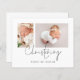 OBS! Det finns två pappra alternativ att välja mellan för detta storlek (4,5 x 5,6 tum) i budgetintervallet. För denna produkt skulle jag vilja rekommendera halvglans som är ett 110 g/m kort lagrar, liknande tjocklek som ett vykort. Sateringsalternativet är en mycket tunnare papper på 80 g/m. Standardvärdet är semiglans. OBSERVERA ATT DET FINNS EN PER lakan. Budget Modern Script 2 Photos Christening. Minimalistiskt stil. Byt bara ut de två exempelbilderna mot ditt eget och anpassa dig till ditt baby namn och vid grund och alla detaljer på baksidan. Christening finns i ett skript för snyggt set.