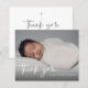 Detta budgetvänliga moderna manus Baby Foto Dopning tackkort har en vacker helsides horisontell bild och handskrivet tackskript och minimal redigerbar text. Klicka på redigeringsknappen för att anpassa denna design.