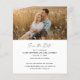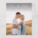 Budget Modern Script Foto Bröllop Spara Datum-kort. Baksidan innehåller ett andra foto med ytterligare detaljer. Klicka på redigeringsknappen för att anpassa denna design med dina foton och bröllopsdetaljer.