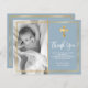 Budget, Elegant Guld Dusty Blue-döpt och baptism tack vare dina kort. Tack till familj och vänner med den här moderna personligen tack för att du religiösor ett platt kort. Den har handskript med bokstäverna "Tack", runt dubbla faux guld foil ram på ljusdammig blå bakgrund. Det här vackra fototackkortet blir också perfekt för baptism/döpning/namnceremoni/bekräftelse och heligans gemensamma tack för att du kort för pojke eller flicka.