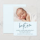 Denna moderna fotobarn dopfödselinvitation har handskriven kalligrafi dop konst som är flyttbar och som du enkelt kan ändra färgen på, ett horisontellt foto och redigerbar text. Klicka på redigeringsknappen för att anpassa denna design.