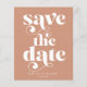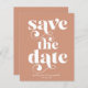 Budget Modern Snyggt Typography Bröllop spara datum i den moderna neutraltens boho-skugga av terracotta rostar brunt. Perfekt för att ge dina framtida gäster kännedom om din lycklig-händelse eller förlovning! Kontakta oss på cedarandstring@gmail.com om du behöver hjälp med designen eller matchande produkter.