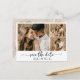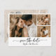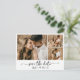 Elegant minimalist trendig modern typsnitt script 3 foto collage spara datum kort i svart och vitt. Denna känsliga design är perfekt för modern bröllop. Funktioner (tre) 3 rutnät foto collage, en nyckfullt kalligrafi i handskrivna stilen svans typsnitt med kärlek hjärta. Baksidan full foto med en genomskinlig överlägg, du kan lägga till din bröllops detaljer och information. Lätt att anpassa det med din bröllops detaljer och bilder.