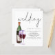 OBS! Det finns två pappra alternativ att välja mellan för detta storlek (4,5 x 5,6 tum) i budgetintervallet. För den här produkten skulle jag verkligen vilja rekommendera halvglans, som är ett 110 g/m kort lagrar, liknande tjocklek som ett vykort. Sateringsalternativet är en mycket tunnare papper på 80 g/m. Standardvärdet är semiglans. Kuvert är ett extra som tillval och är något större än det storleka kortet. Budget Modern Vin Bröllop i kväll, Party. Enkel elegans med vin flaska och 2 glas till grund lämnades, och huvudrubriken i ett set handskriftskript stil. Anpassa enkelt resten av texten till dina egna detaljer. Med en valfri (ta bort om det inte behövs) QR-kod på baksidan för att gästerna ska kunna svara och se mer information. Din QR-kod genereras automatiskt för att uppdatera exempelkoden i designen när du helt enkelt ändrar exempelwebbadressen i mallen med din egen webbadress för bröllop.