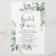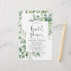 Budgeterad Blommigt Grey Botanical Watercolor Vår bröllop Inbjudningskort för möhippa på grönt och vit bakgrund - innehåller vacker och elegant manustypografi med moderna botaniska löv och gieneri för speciella Briden att vara firande.