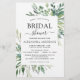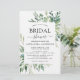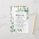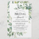 Budgeterad Blommigt Grey Botanical Watercolor Vår bröllop Inbjudningskort för möhippa på grönt och vit bakgrund - innehåller vacker och elegant manustypografi med moderna botaniska löv och gieneri för speciella Briden att vara firande.