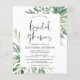 Budgeterad Blommigt Grey Botanical Watercolor Vår bröllop Inbjudningskort för möhippa på grönt och vit bakgrund - innehåller vacker och elegant manustypografi med moderna botaniska löv och gieneri för speciella Briden att vara firande.