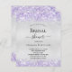 En modern, elegant möhippa. Faux silver metallisk tittar bakgrund dekorerad med violett, lavender färgad faux glitter, gnistor. Anpassa och lägg till information om namn och party. Svart färgad brev.