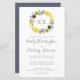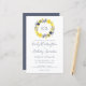 Den här bröllop-designen har briden och groomens monogram initialer i grått som är inramat av en vattenfärgad andedräkt av gult och grått blommor. Anpassa texten med parets namn i handskriftsskript för elegant och uppgifterna om bröllop i sans serif och italics. Baksidan är en solid skuggning av grått.