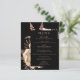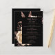 Den här eleganten har den moody menyn bröllop en lush, romantisk blommigt buquet i elfenben med faux-folie från ro och löv från glitter på svart bakgrund. Anpassa rosan ro i typsnitt snyggt på en svart rektangel. Kortets baksida är starkt svart.