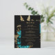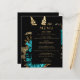Den här eleganten har menyn moody bröllop en lush, romantisk blommigt buquet i turkos med guld faux foil och glitter foliage på svart bakgrund. Anpassa guld-färgad-texten i typsnitt snyggt på en svart rektangel. Kortets baksida är starkt svart.