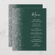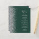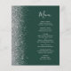 Den moderna bröllop-menyn på den lämnat kant i eleganten har en silver faux glitter gräns. Anpassadet kombinerar handskriftsskript för silver grått och kopparplåt typsnitt på mörken med bakgrunden till grönten. Den omvända sidan har en matchande grönt- och silver-design.