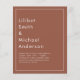 Elegant modern mörk terrakotta, jordnära, kanel, tuscany, sepia hud (färgnamn) monokromt bröllopsobjekt designat av LeahG®, grundare av LowBudgetWeddingNetwork®. Textmallar på båda sidor låter dig lägga in all din nödvändiga QR-kod, RSVP, mottagning, boende, gåvoregister och riktningsinformation. Lägg till ett foto, logotyp eller en liten karta till designen efter behov med hjälp av designverktygen. Detta gör att du kan spara pengar genom att undvika att behöva köpa extra inneslutningar och informationskort.📌 Fäst denna design på din Pinterest-bröllopsmoodboard så att du kan komma igång med din brölloppsplanering på bästa sätt! Monokroma designs är perfekta för alla årstider, inklusive höst, sommar, vår och vinter. Du kan också lägga till dina egna grafik som överlägg för att ge din tema en unik touch. Zazzle har en GRATIS LIVE DESIGNER-tjänst som kan hjälpa dig med detta. För idéer, se mina brölloppskollektioner här: www.giftsandinvitations.com.