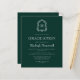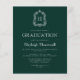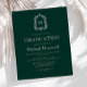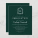 Denna klassiska, eleganta inbjudan till examensfesten har en vit monogram-initial i öppen seriffstil omgiven av en konstnärlig akantusdekoration på en mörkgrön bakgrund. Anpassa texten med examen kandidatens namn och fests detaljer. Baksidan av kortet är enfärgat grönt. Perfekt för en examen från gymnasiet, högskola eller universitet.