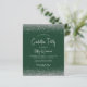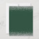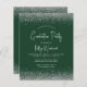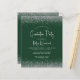 Denna enkla, eleganta examensfestinbjudan har en övre och nedre kant av silverfärgad glitter på en mörkgrön bakgrund. Ordet "Examen" och namnet på den examinerade visas i dekorativ modern handstilsstil. Anpassa inbjudan med festsdetaljer i vit sans serif-teckensnitt på en mörkgrön bakgrund. En matchande mörkgrön och silverglitterdesign visas på baksidan.