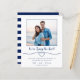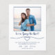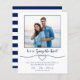 Lägg märke till era pengar för datum och spara i bröllop, med detta moderna "gifter sig" nautiskt foto, spara datumkortet på billigare papper, med ett rep i form av ett hjärta, med elegantens moderna text och ett foto av paret lycklig. Baksidan har klassisk marinblått och vitt rand.