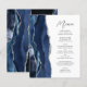 Den vänstra kanten på denna eleganta moderna bröllopsmeny har en marinblå akvarell-agat-design kantad med falskt silverglitter. Den anpassningsbara texten kombinerar kolgrå handskriven script och sans serif-teckensnitt på en vit bakgrund. Den marinblå och silver-agat-designen upprepas på baksidan.