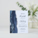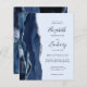Den moderna bröllopsinbjudan från elegantens lämnat kant har en marin blå vattenfärgsagat gräns som trimmas med faux silver glitter. Med anpassadet text kombineras handskrift, tryckplåt och kursivt typsnitt i marint blått på blekens blå bakgrund. Den omvända sidan har en matchande marin blå och silver-agate-design.