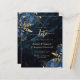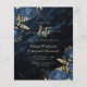 Med det här elegant bröllop sparar du datumkortet med en blå blommigt som är uppställd i två hörn av guld faux foil grey, på en bakgrundsbild av marinblått vattenfärgsagat. Anpassadet kombinerar guld-färgad serif, italic och handskriftsformat typsnitt. Den omvända sidan har en matchande marin blå och guld-blommigt och agate-design.
