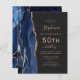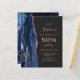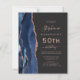 I elegantens lämnat kant, som är 50:e födelsedagsfest inbjudan, finns en marinblått vattenfärgad agat gräns som trimmas med faux glitter i ro guld. Anpassadet kombinerar handskrift, rityta och kursivt typsnitt med ro-färgad på en svart bakgrund. Den omvända sidan har en matchande marin blå utformning och ro guld-agatdesign.