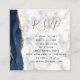 Budget Navy Guld Agate Marble Bröllop QR Code OSA Tilläggskort