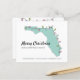 På vårt vykort för budgetsemester med flyttmeddelande är en ljus turkos karta över Florida dekorerad med flerfärgade pastellfärgade julbelysningar. Exempeltexten på framsidan av kortet lyder för närvarande: "God jul från vårt nya hem i Florida" tillsammans med ditt namn och din nya adress längst ner på kortet. På baksidan finns din nya adress, telefon, e-post och annan information plus en julhälsning. All text på fram- och baksidan av kortet kan enkelt ändras i personaliseringsmallen.