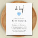 Den här budgetpojkens babyinbjudan är dekorerad med blå vattenfärg baby fötter och Oh Boy! i snyggtens kalligrafi. Enkelt anpassade. Använda Verktyg i Design om du vill ändra texten storlekt, stil eller färg. Ursprunglig vattenfärg © Michele Davies.