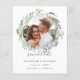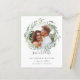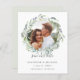 LÅGA KOSTNADER BRÖLLOP SPARA DATUM - ENVELOPES INGÅR INTE I. Elegantens botaniska spara datumen har ett favoritfoto av förlovningen omgivet av en rund krans av oliver och löv i en vattenfärgspalett av gråtoner och grönt Anpassa med namn, datum och plats för bröllop.