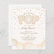 En inbjudan till babydusch med en illustration av neutraltens ballonger med dekorativ text "Hon är på väg till POP" omgiven av konetti. Anpassa texten med information om tillfälle.