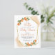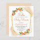 Den här citrusburken innehåller en guld-geometrisk ram med vattenfärgade orangar. Anpassadet finns i handskriftsskript för modern orange och svart sans serif. Anpassa den med namn i mamma och duschdetaljer. Kortets baksida är en pastellskugga med orange som matchar vattenfärgens högdagrar på framsidan. Idealisk för en sommarbabydusch!