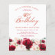 Röda rosor och rosablommiga pioner är nästlade i mörka gröna blad på denna vackra och unika födelsedagsinbjudan.