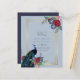 Vacker påfågel med turkos och blå, burgunderfärgade blommor, salvia gröna blad visas på dessa höst-, vinterbröllopsartiklar. Del av en större samling som inkluderar bröllopsinbjudningar till budgetpris, spara datum-kort, RSVP, tack-fotokort, bröllopspresenter till brud och brölloppsfest, med mera. För en detaljerad GRATIS guide för vinterbröllopsplanering, besök weddingdesignchic.com.
