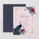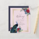 Vacker påfågel med turkosa och blå, burgunderfärgade blommor, salvia gröna blad visas på dessa höst-, vinterbröllopsartiklar. Del av en större samling som inkluderar bröllopsinbjudningar till budgeten, spara datum-kort, RSVP-kort, tack-fotokort, bröllopspresenter till brud och brölloppsdeltagare med mera. För en detaljerad GRATIS vinterbröllopsplanering, besök weddingdesignchic.com.