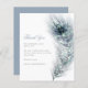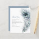Ett prisvärt BUDGET-alternativ i en mindre storlek 4,5 x 5,6” med semiglossy 110g ytvikt, som har liknande tjocklek som ett vykort (lämpar sig dock inte att användas som vykort). OBS! Det finns EN per ark. Peacock Feather Wedding Thank You. En elegant vintageinspirerad påfågelsfjäder i nyanser av blå och teal löper längs höger sida och texten är justerad till vänster. Personliggör enkelt texten. En matchande dammig blå färg finns på baksidan.