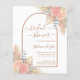 Inbjudningskort för möhippan är dekorerat med vattenfärgspampasgräs, eukalyptus och blommigtar. Snyggtens typografi är i terracotta. Enkelt anpassade. Använda Verktyg i Design om du vill ändra texten storlekt, stil eller färg. Eftersom vi skapar vår teckning kommer du inte att hitta just den här bilden från andra designers. Ursprunglig vattenfärg © Michele Davies.