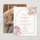Vackra blomsterliknande pampasgräs vattenfärger och chic valv ramar in detaljerna för er speciella bröllopsfirande, satta i stilfull terrakotta-typografi och ert speciella foto på baksidan av denna eleganta budgetbröllopsinbjudan. Designad av Thisisnotme