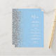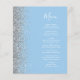 Den moderna bröllop-menyn på den lämnat kant i eleganten har en silver faux glitter gräns. Anpassadet kombinerar vitt handskriftsskript och typsnitt på en pastellbakgrund som är baby blue. Den omvända sidan har en matchande design i blått och silver.