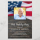 USA Amerikanska Flagga Födelsedagsfest inbjudan. Vänner i inbjudan och familj till din patriotiska födelsedagskalender med dessa moderna amerikanska Flagga inbjudningar. Anpassa den här amerikanska flagga-inbjudan med information om evenemang, foton, namn och party. Denna inbjudan från den amerikanska Flagga är också perfekt för militären pension, soldaten som går bort från party, militären studenten, soldaten som välkomnar firande, förändrar texten vid anpassning av händelser. Se vår samling för matchande patriotiska födelsedagspresenter, party favors och artiklar. COPYRIGHT © 2021 Judy Burrows, Black Hund Art - Med alla Höger reserverade. Patriotisk Anpassningsbar Foto American Flagga Birthday-inbjudan