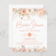 Budgetera persikobeige blommor på vit inbjudningskort för möhippa. Anpassa namn, data och information.