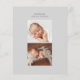 Ett fullt-blekt foto-födelsemeddelande med stort rörligt namn inslag i ett elegant modernt typsnitt med födelsedetaljer nedan. På baksidan av kortet finns ytterligare två nyfödda foton och föräldrarnas personliga meddelanden eller ytterligare födelseinformation. Hela inslag på det här kortet är anpassade, så det är enkelt att skapa en typ av design genom att byta ut typsnitt och färger på text och färg för att uppfylla dina specifika behov. Kortets baksida är ett idealiskt ställe att även lägga till foton från syskon på det spännande tillkännagivandet från sin nya bror eller syster. Detta skulle också vara ett vackert antagande eller ett vackert tillkännagivande av graviden.