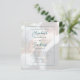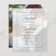 Den här enkla, minimalistiska bröllopsinbjudan innehåller texten i elegant teal blue-skript och sans serif-typsnitt, ramad av en tunn rektangel. Byt enkelt ut exempelbilden mot ett eget foto av paret. En vit skärm över fotot hjälper till att få texten att framträda. Samma bild visas utan skärm på baksidan.