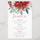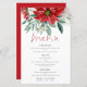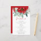 Budget Red Poinsettia Blommigts Rustic Bröllop Menu. Ett underbart värde storlekt på 5,5 x 8,5 tum i en rad pappra alternativ. En informell typografi för huvudrubriken Menu som kompletterar resten av texten som du lätt kan anpassa, med vackra vinterjulklummiblommor och löv överst.