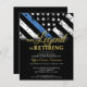 Denna design har en polisflagga med svarta och vita ränder, och en tunn blå linje samt. Texten "Legenden går i pension" sitter ovanför alla festsdetaljer för den pensionerade polismanens, sheriffen, kaptenens eller polischefens pensionsfest.