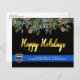Skicka God Jul-hälsningar till vänner, affärer, kollegor inom lagföringsavdelningar och ditt samhälle med detta unika tunna blå linjen polisens julkort - Modernt svart och blått med julgran med blad och bär och elegant guldbokstav. Anpassa med polisens logotyp, meddelande och avdelning. Dessa budget jul postkort måste skickas som stora vykort så kan medföra standard portoavgifter men de behöver inte kuvert eller returadressetikett. COPYRIGHT © 2020 Judy Burrows, Black Dog Art - Alla rättigheter förbehållna. Budget Polisen Avdelning Jul Högtidskort