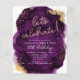 Modern Elegant Glamour Purpur Violett Guld Glitter Gnistra Konfetti Alkohol Bläck Vattenfärg Stänk Fläck Låt Oss Fira Fest Födelsedagsinbjudan