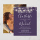 Med vackra strängljus och ditt foto och signatur stil namn, kan denna eleganta budget purpur bröllopsinbjudan anpassas med din information i chic bokstäver. Designad av Thisisnotme©