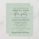 Budgetvänlig resa grönt spara datum meddelande för en mottagning eller party för att fira er anslutning eller bröllop. "Spara datum för vår lyckligtvis allt efter Party" skrivs i enkel typografi och ett elegant med dekorationer. Anpassa ditt meddelande från bröllop och lägg till datuminformationen och namnen i ett namnteckning skript. På motsatt sida lägger du till webbadressen adress för bröllop för att skapa en QR-kod för gäster som ska söka efter behålla med dina foton och händelser i bröllop, och ditt första data för namn och bröllop och mottagning.
